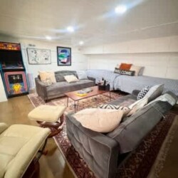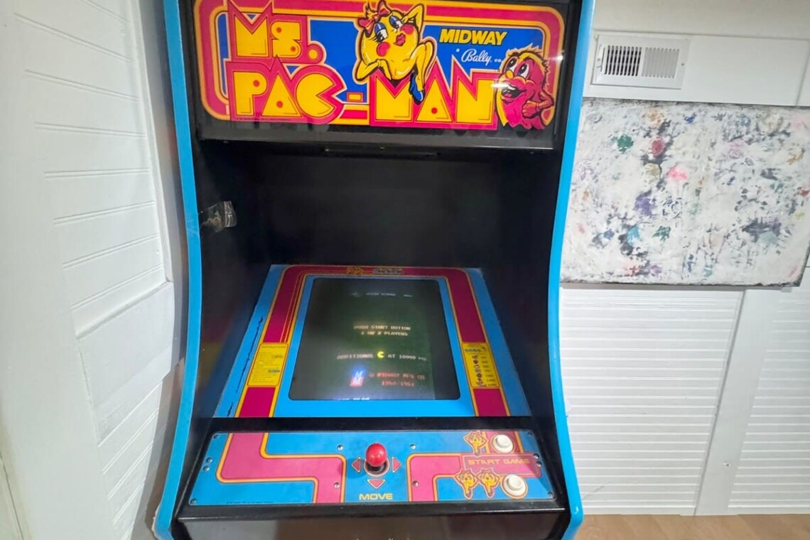 Game room with pool table, arcade machine