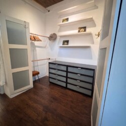 (White wardrobe cabinets in the first primary suite are reserved for owners.)