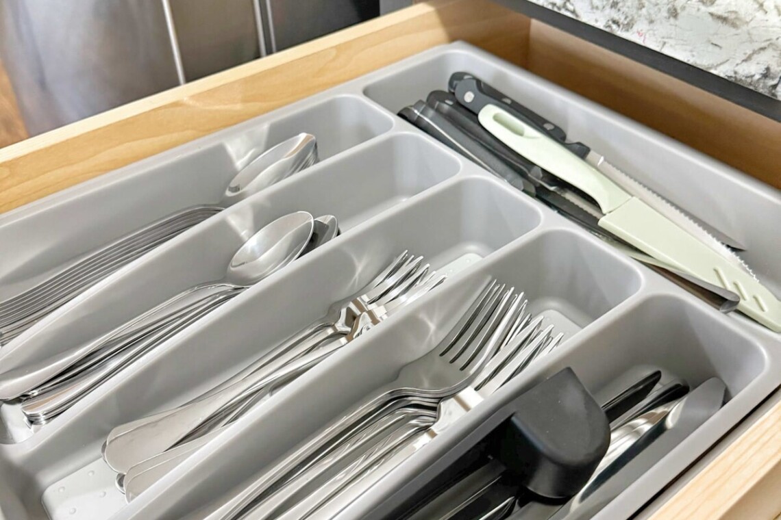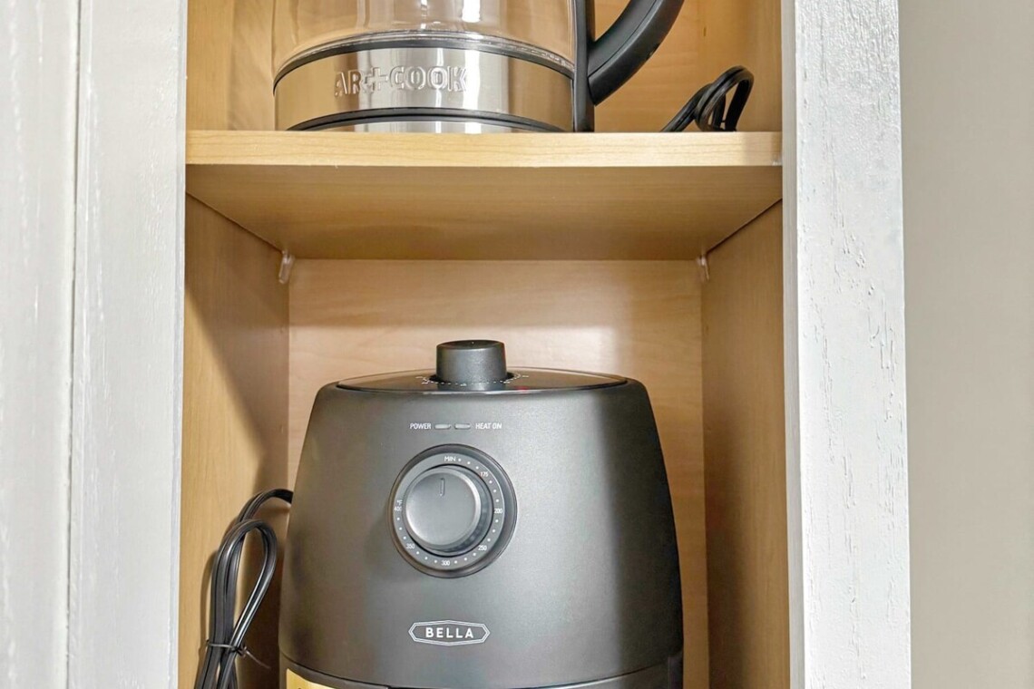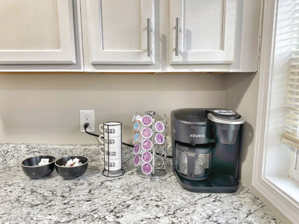 Stainless steel appliances, Keurig coffee maker, dish-ware, cutlery, and pantry basics
