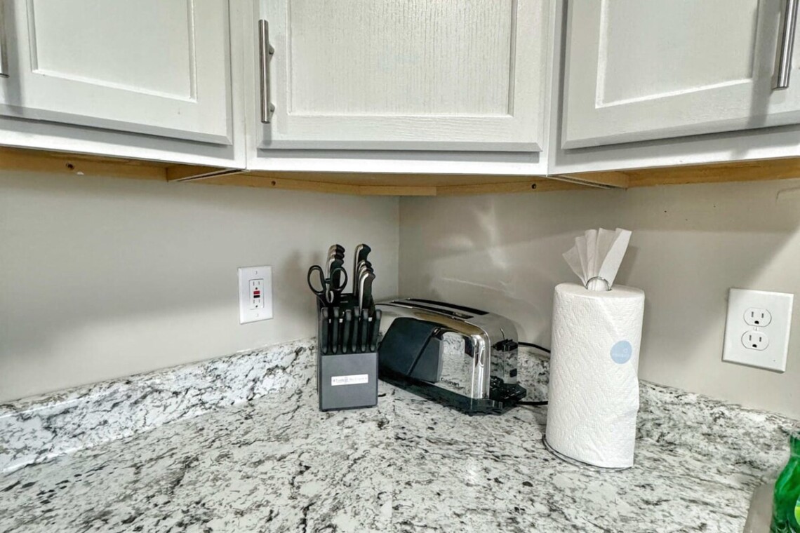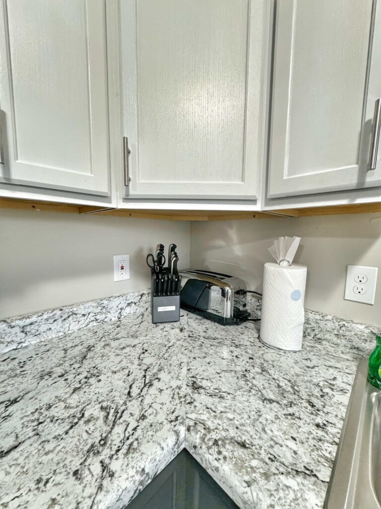 Open layout with granite countertops — perfect for meal prep or takeout nights